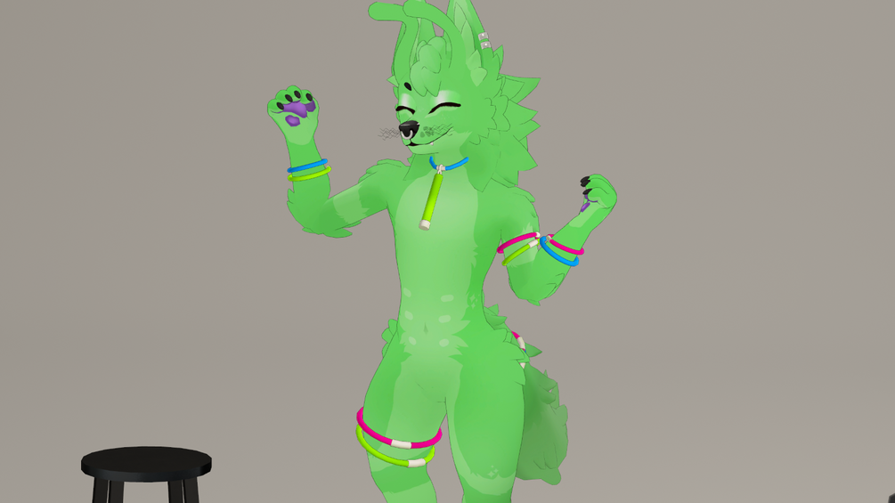 A set of Audiolinked glowsticks for the Chlorokit by Skip4D/Bubblegumbark! Includes physics for the collar, blendshapes to hide individual bands, and a toggle for the Winter tail shape or the Summer tail shape.